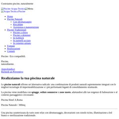 Argomenti: Irrigazione, Biolago, Piscine, Fuoriterra, Preformate Interrate, e Su Misura Forma Libera.